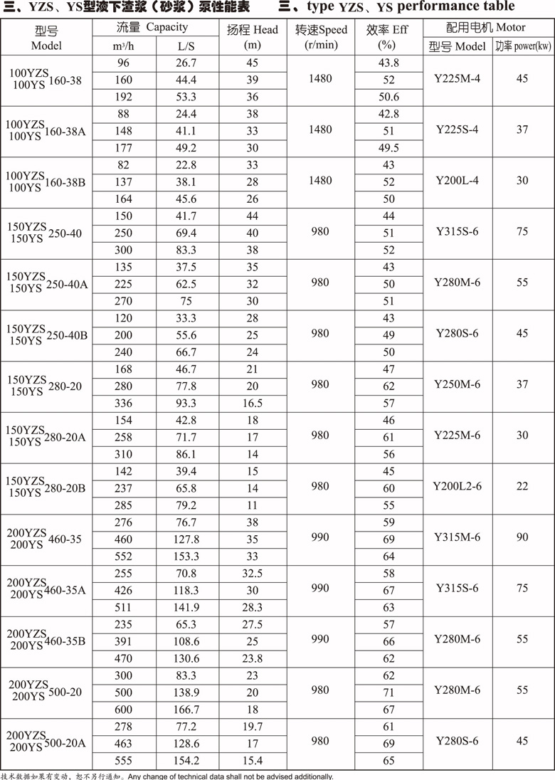 1、YS-YZS型液下重型砂漿泵是立式單級單吸懸臂式離心泵結構,葉輪為半開式葉輪,在葉輪吸入邊延伸處設有攪拌葉片。該泵是孝昌機械開發用于加氣混凝土行業的一種專用配套用泵。
